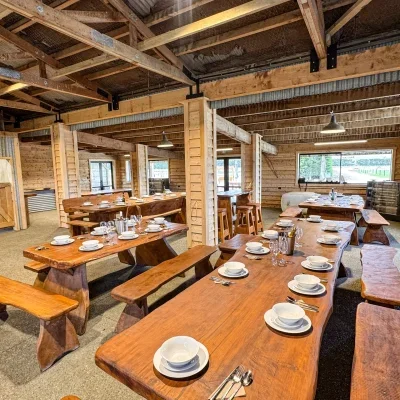 Nestled amid breathtaking rural scenery, our restored 100-year-old woolshed, – The Farm Shed – lavender fields, open paddocks, and charming farm animals create a unique rustic yet versatile setting for memorable gatherings.